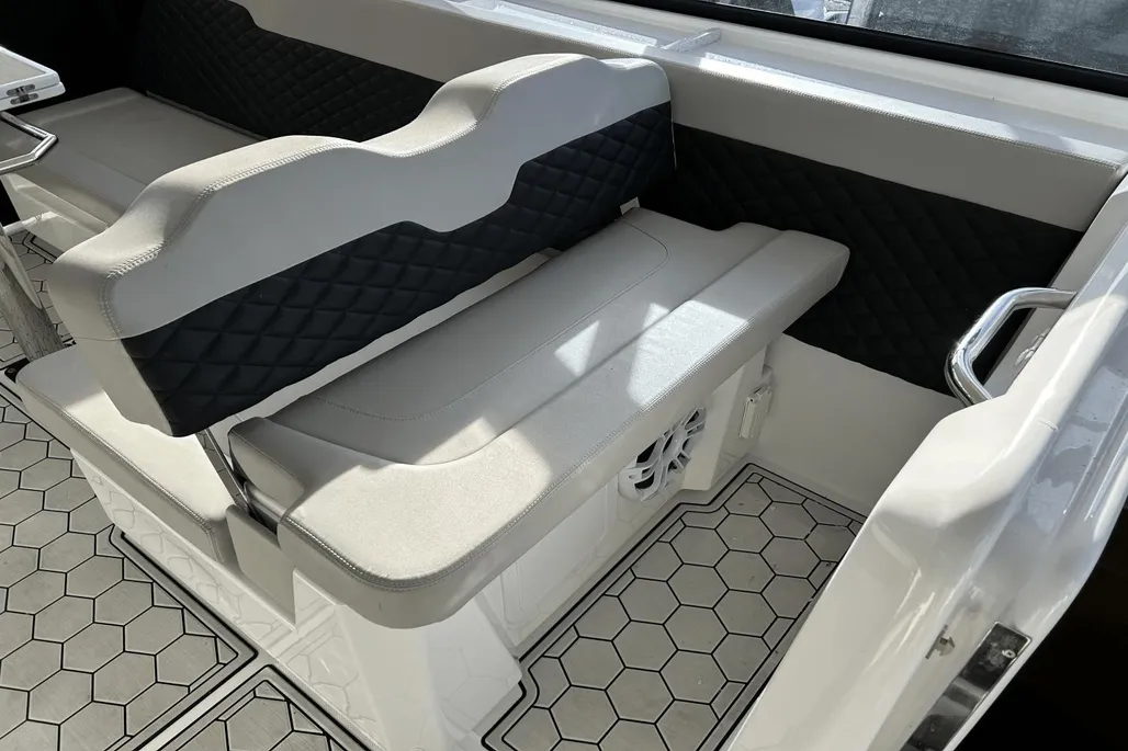 Step aboard our 32ft Saxdor 320 GTO. The Way Too Saxy is both modern and sporty with a high level of comfort. With an extended sunpad on the foredeck and a dinette that converts into a sun-bathing space the options of lounging around are plentiful. Below decks it’s clear that the 320 GTO should be comfortable in a role as weekender, not just a fast, handsome dayboat.
