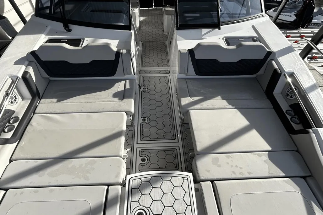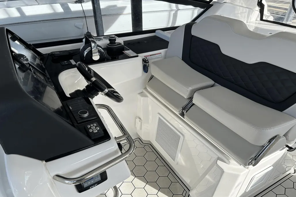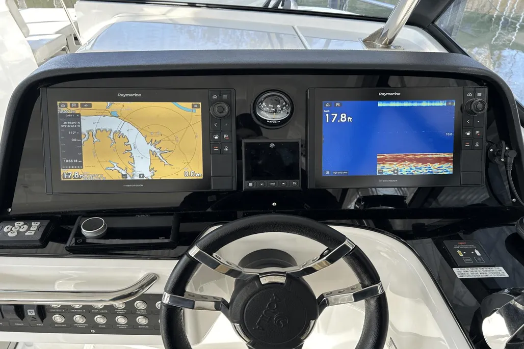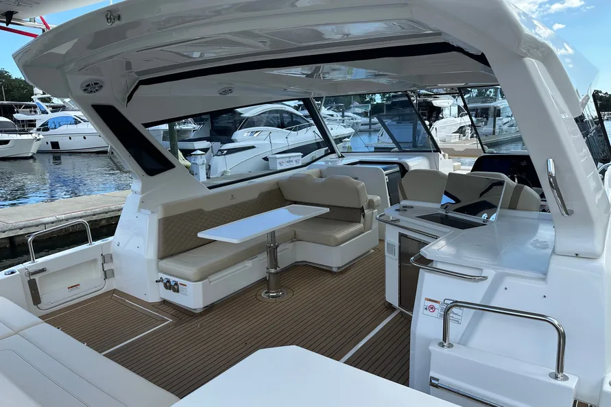 Step aboard our 42ft Regal. The 42 FXO provides fantastic “big boat” features including a diesel generator, two private staterooms, an optional second head and a spacious flybridge. Your experience will be transformed by the optional Seakeeper Gyro Stabilizer which eliminates the majority of boat roll. The 42 FXO with it’s outboard versatility, is as suitable for coastal cruising as it is spending a day at Crab Island.