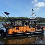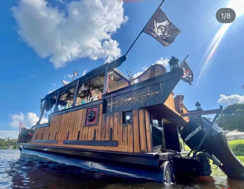 Our spacious Pirate pontoon boat is fully decked out with a playful pirate theme, turning every trip into a true adventure on the high seas. Whether you’re hunting for dolphins on a guided excursion, celebrating a birthday, hosting a bachelorette party, or soaking up the sun at Crab Island, our experienced captains deliver a safe, fun and unforgettable experience every time.